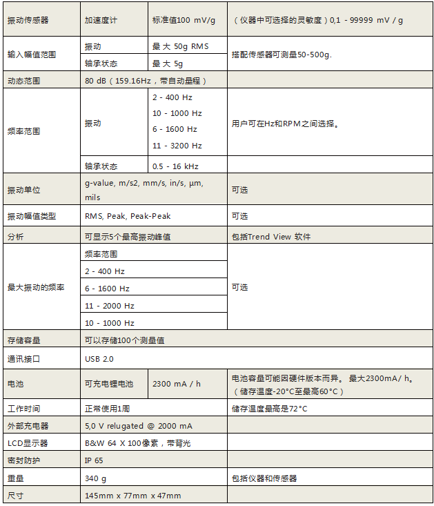 單位:g,mm/sec,μm,inch/sec,mils 幅值類型:RMS,Peak 或 P-P